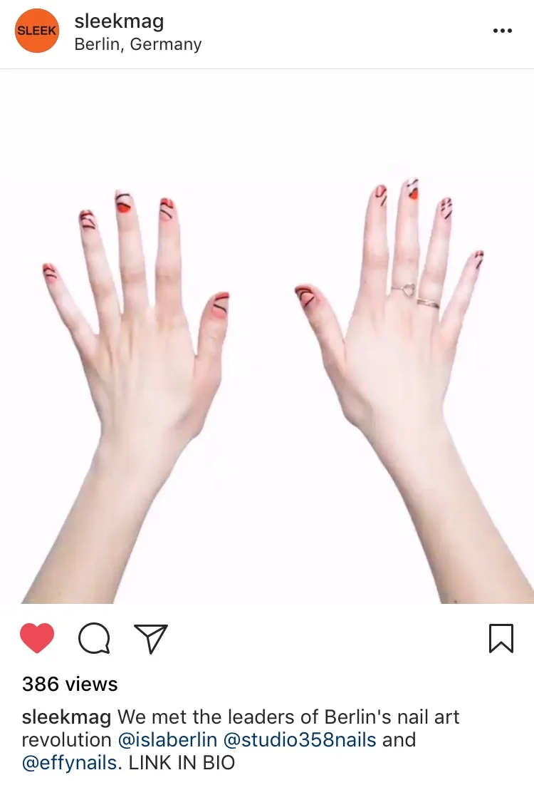You definitely have to chisel away at it for sure. I was doing nail art from the start, but it wasn’t like it was in Essex. It would just be people that were coming to Berlin and knew I was here or they were on holiday and knew where to find me through instagram. And then I was in the industry anyway, doing plain manicures and things like that as well on the side. Even now it’s not strictly all nail art, but it’s definitely changed over the last few years.